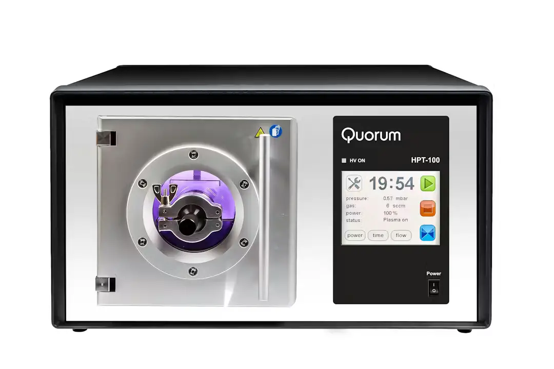 The Quorum HPT-100 is a versatile, compact benchtop RF plasma cleaner and asher. It is designed for the routine cleaning of SEM and TEM specimens, holders, and grids to remove hydrocarbon contamination and improve image resolution.